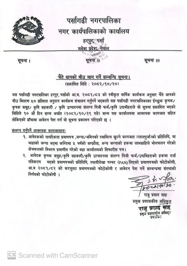 » चैते धानको बीउ माग गर्ने सम्बन्धी सूचना ।