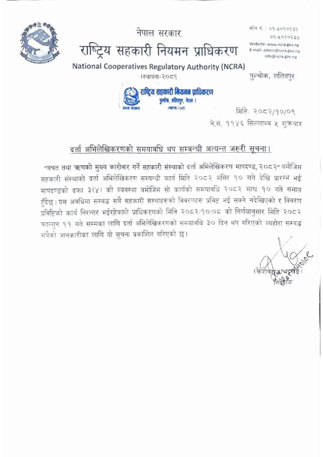 दर्ता अभिलेखकरणको समयावधि थप सम्बन्धी अत्यन्त जरुरी सूचना ।