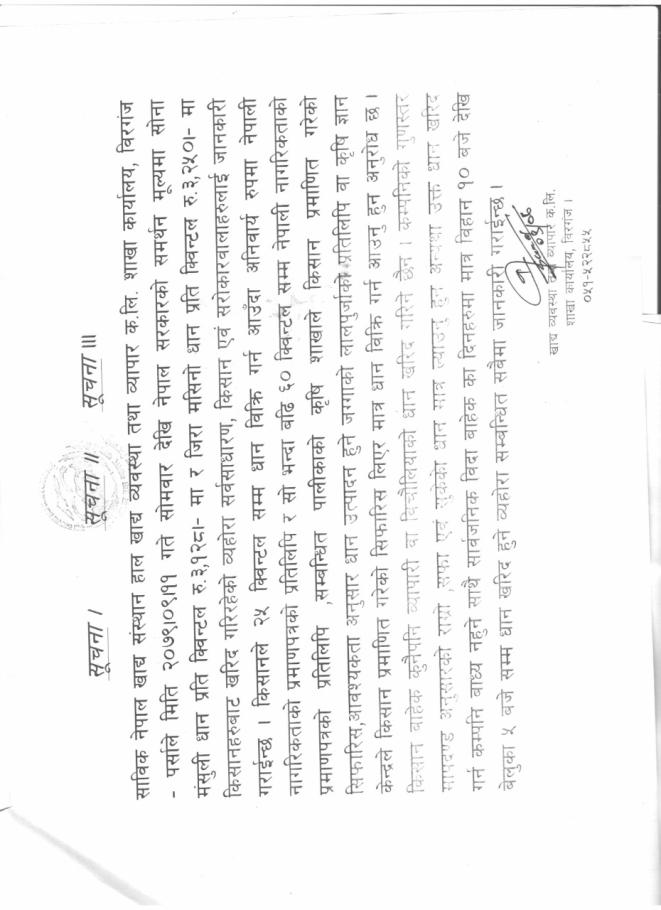 » धान विक्रेता किसानहरुलाई जानकारी सम्बन्धमा ।