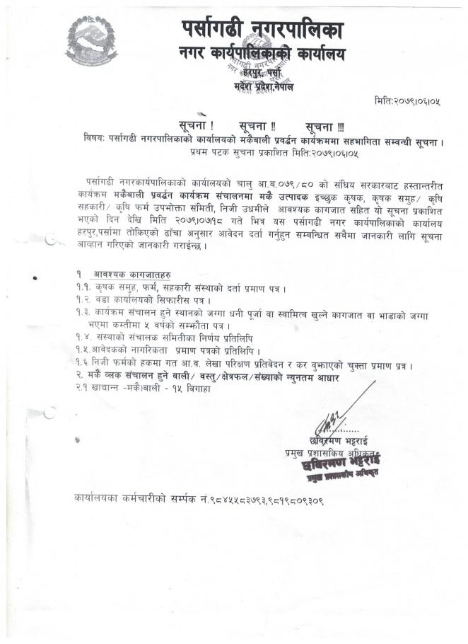मकैबाली प्रवर्द्धन कार्यक्रममा सहभागीता सम्बन्धी सूचना ।